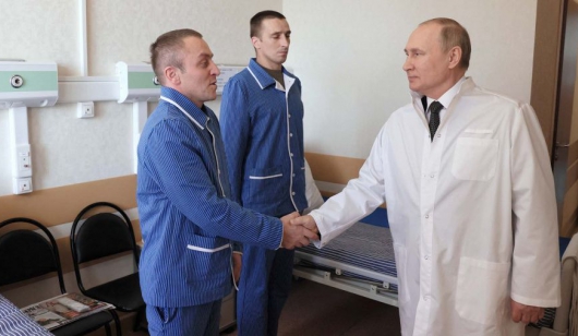 Por primera vez Putin visitó a soldados rusos heridos en Ucrania