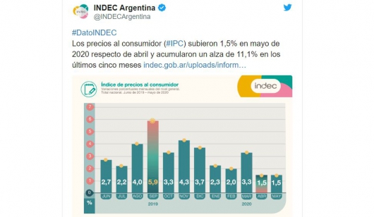 Los precios subieron en mayo 1,5% y por primera vez en 2020 alimentos quedaron abajo del promedio