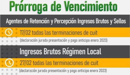 LA RIOJA.- El Gobierno de La Rioja, comunica la prorroga del vencimiento de Agentes de Recaudación tanto de Ingresos Brutos como de Sellos y del Impuesto sobre los Ingresos Brutos Régimen Local.