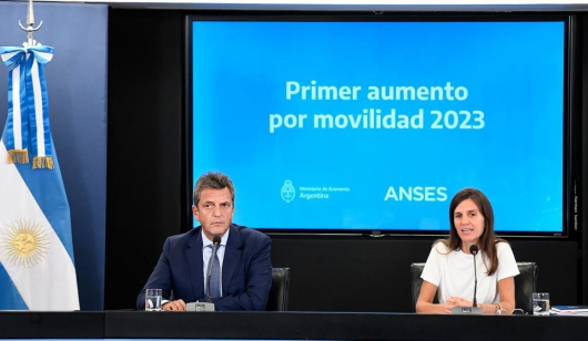 La directora ejecutiva de ANSES, Fernanda Raverta, y el ministro de Economía de la Nación, Sergio Massa, anunciaron hoy un refuerzo para las jubilaciones y pensiones de hasta dos haberes mínimos, que permitirá que ninguna jubilación quede por debajo de los 73 mil pesos, más el aumento correspondiente a la Ley de Movilidad.