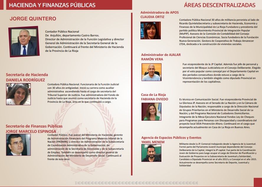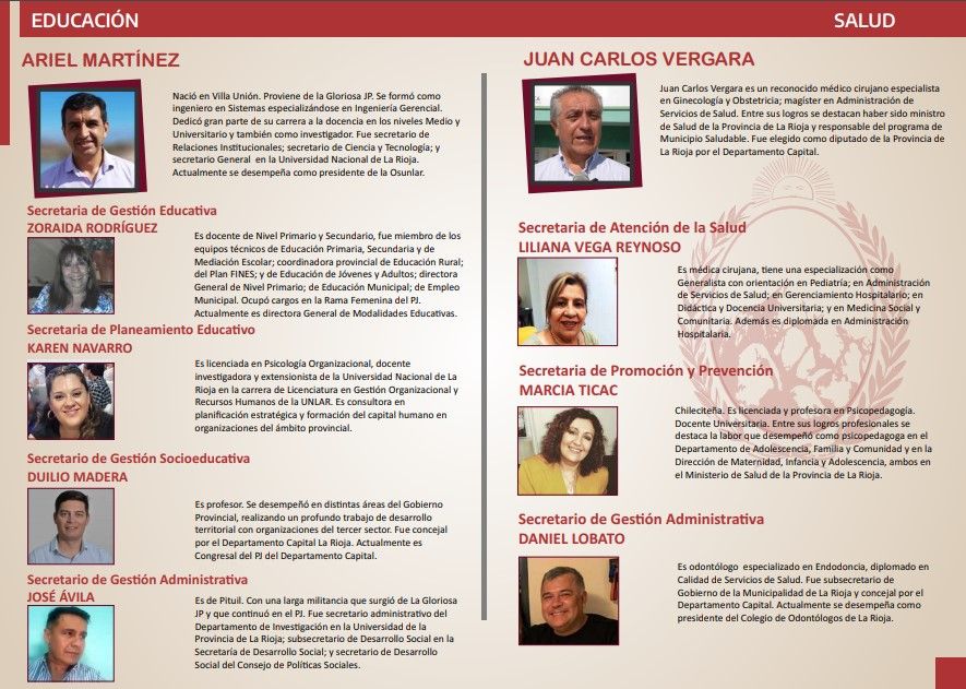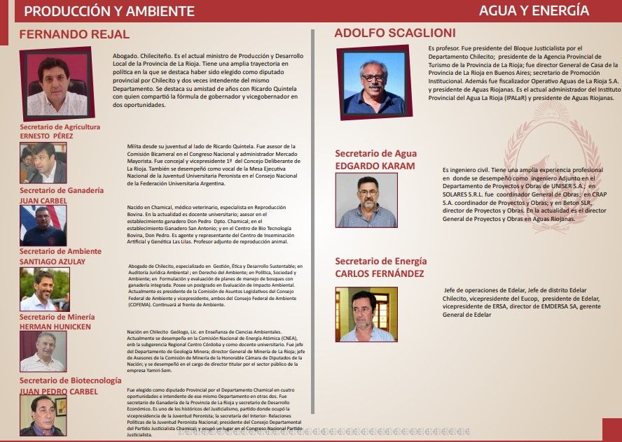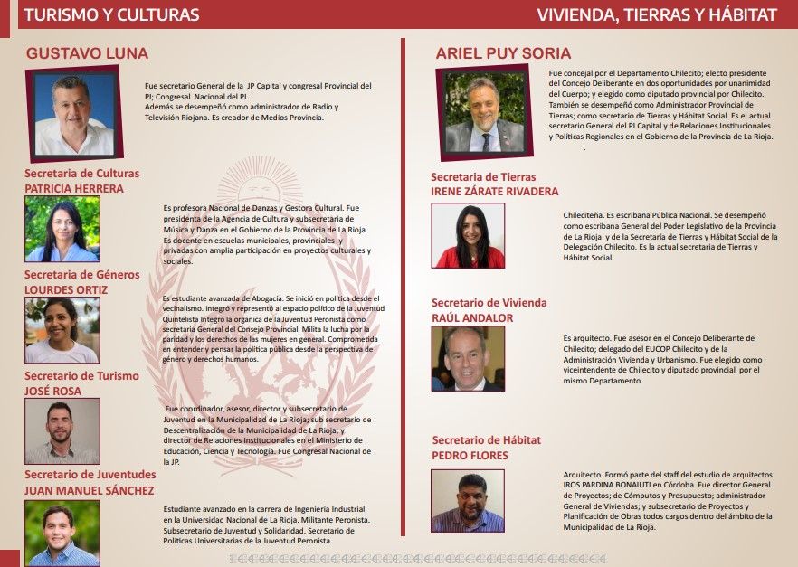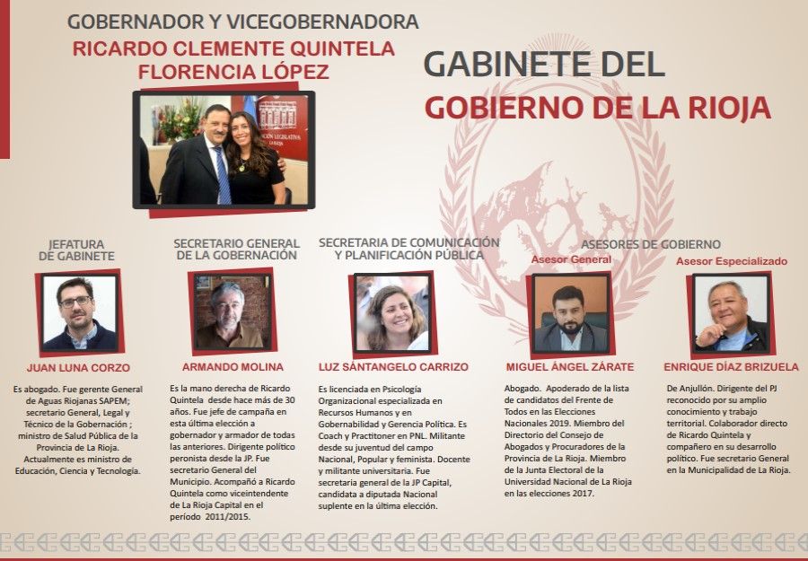 LA RIOJA.- El gobernador electo Ricardo Quintela pone en conocimiento de toda la sociedad, el equipo de trabajo que lo acompañará integrando el Gabinete del Gobierno Provincial a partir de este martes.