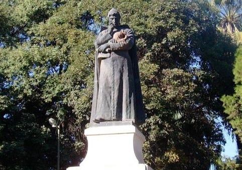 La obra del Tinkunaco es autoría del escultor Mario Aciar mientras que la imagen de Pedro Ignacio de Castro Barros pertenece a Garibaldi Affani.