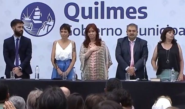 Previamente, Mendoza asumió como intendenta de Quilmes. “Por Néstor Kirchner, por Cristina Kirchner, por la militancia y por el pueblo, sí, juro”, recitó la jefa comunal y posteriormente la tomó juramento a su equipo.