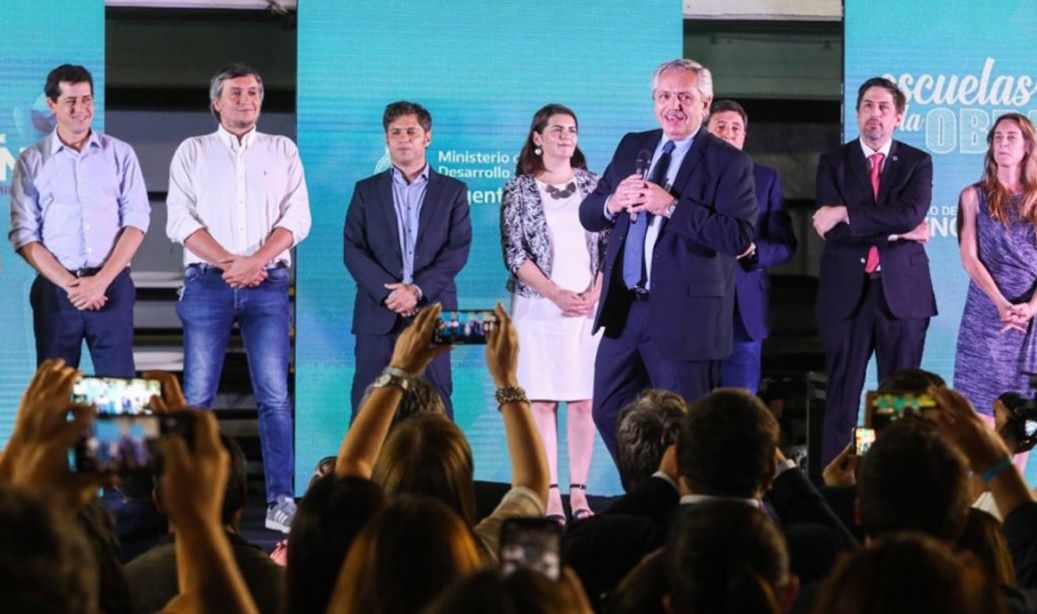 El presidente Alberto Fernández participó este lunes del lanzamiento en el partido bonaerense de Moreno del programa nacional Argentina Unida por Educación y Trabajo, a través del cual titulares de planes sociales refaccionarán escuelas públicas.