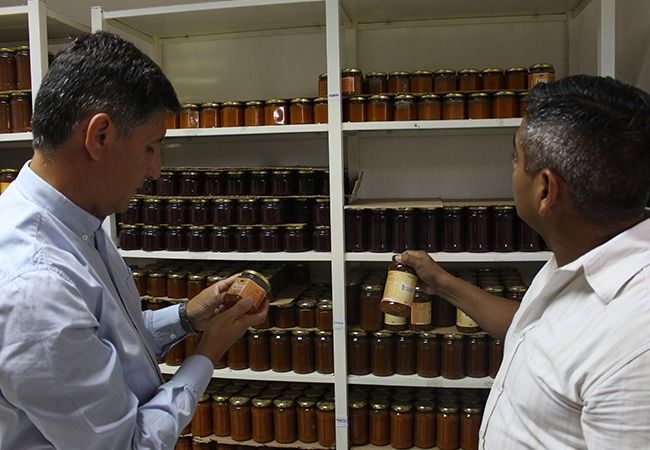 Por su parte, Walter Gómez explicó: "hoy, estamos comenzando con la fábrica de dulces, mermeladas y frutos en almíbar que tiene la universidad con la producción de dulce de membrillo".