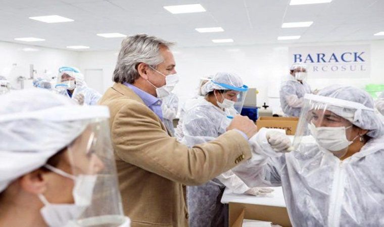 El presidente Alberto Fernández visitó este viernes la empresa de producción de piezas para la industria automotriz, Barack Mercosul, en el municipio bonaerense de San Martín, que comenzó a fabricar barbijos y cofias para colaborar en la lucha contra el coronavirus en todo el país.