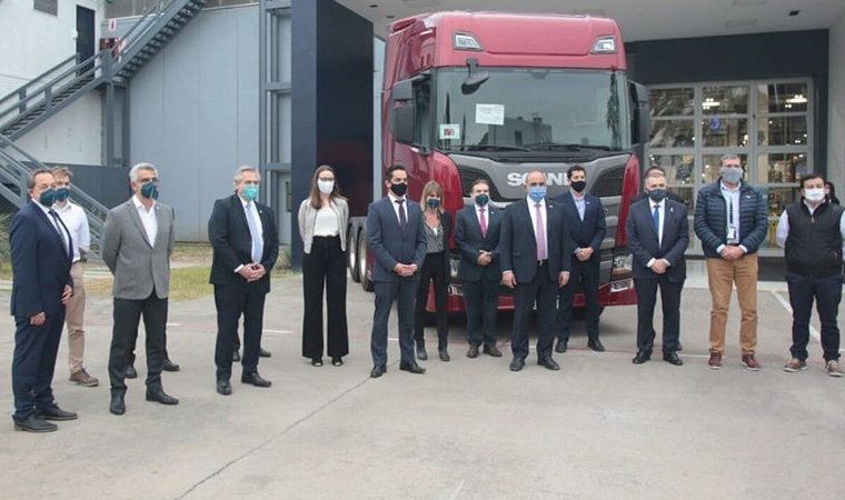 El Presidente y el gobernador tucumano visitaron juntos la planta de la firma Scania, a la que Manzur definió como "un ejemplo de cómo debe trabajar la producción en esta pandemia", y resaltó que "sus directivos mantuvieron los puestos de trabajo y se reorganizaron para cuidar a sus trabajadores".