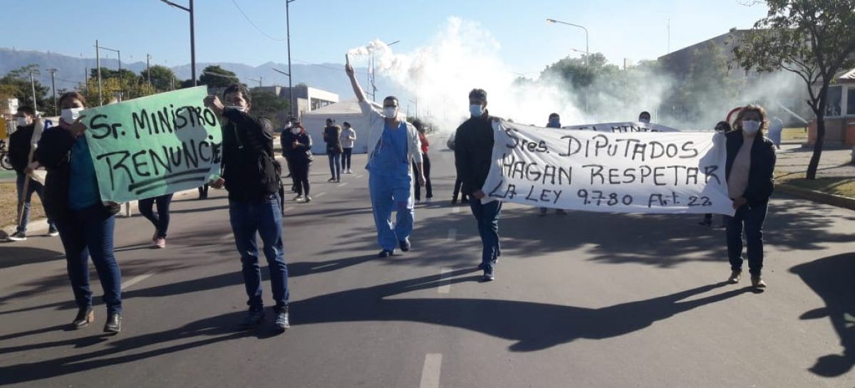 Por ello, este miércoles se manifestaron juntos médicos y no profesionales de la salud que reclaman entre otras cosas aumento de sueldos, el pago del bono extra por el trabajo en la pandemia y el pase a planta de trabajadores precarizados.