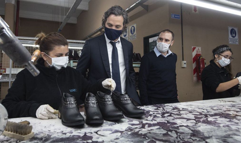 Por la mañana, el jefe de Gabinete de Ministros de la Nación, Santiago Cafiero, visitó junto al ministro de Economía, Martín Guzmán y la vicejefa de Gabinete, Cecilia Todesca Bocco, la sede central de la fábrica de calzado Viamo, una PyME de 260 empleados que fue beneficiada por el programa de Asistencia de Emergencia al Trabajo y la Producción (ATP) , que en su primera etapa asistió a 2,3 millones de asalariados en nuestro país, donde el 94 por ciento de dichas empresas son PyMEs de menos de 25 empleados.