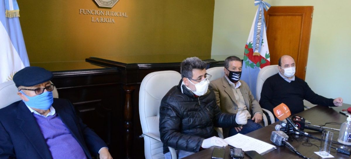 En conferencia de prensa el Tribunal Superior de Justicia de La Rioja (T.S.J.), con la presencia del Presidente del cuerpo Dr. Luis Brizuela y los Vocales Dres. Claudio Ana, Camilo Farías Barros y Gastón Mercado Luna; anunciaron que se habilitará la Firma Digital, la Presentación de Escrito Judicial Digital y si no varían las condiciones que estipula la autoridad sanitaria del Gobierno de la Provincia, a partir del 8 de junio finaliza la Feria Judicial Extraordinaria.