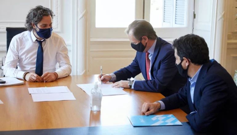 El jefe de Gabinete de Ministros, Santiago Cafiero se reunió con el gobernador de Entre Ríos, Gustavo Bordet, para firmar un acuerdo en el marco del Fondo Fiduciario para el Desarrollo Provincial, el cual prevé 120 mil millones para ayudar a las provincias en el marco de la pandemia.