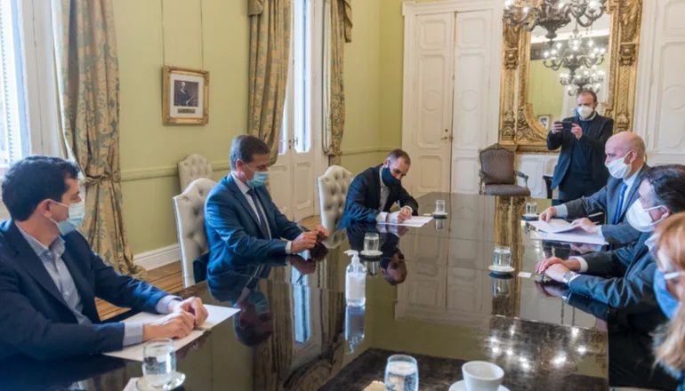 El ministro de Economía, Martín Guzmán, junto a su par de Interior, Eduardo Wado de Pedro, se reunieron con el gobernador de Mendoza, Rodolfo Suárez, con quien suscribieron un acuerdo en el marco del Fondo Fiduciario para el Desarrollo Provincial, el cual prevé asistencia financiera por 120.000 millones de pesos para las provincias.