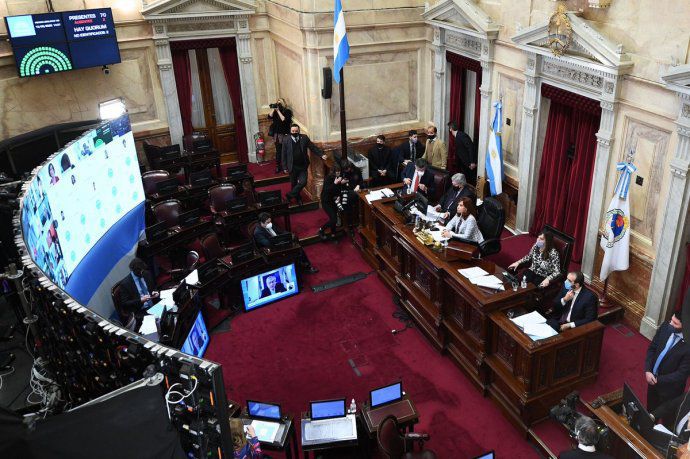 En tanto, frente al Congreso manifestantes opositores se congregaron y montaron una vigilia para protestar contra el tratamiento de la reforma judicial que se aprobará gracias a la mayoría del Frente de Todos y será girado a Diputados, donde el oficialismo aún no cuenta con los números para convertirlo en ley.