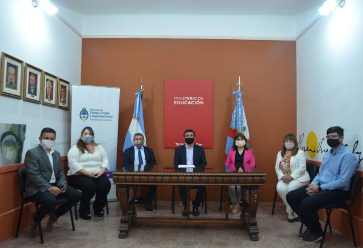 El Ministro de Educación Ariel Martínez, junto a la Secretaria de Gestión Educativa Zoraida Rodríguez, la Secretaria de Planeamiento e Innovación Educativa Karen Navarro, Duilio Madera y José Luis Ávila, Secretarios de Políticas Socioeducativas y Gestión Administrativa, respectivamente, firmaron este llamado para que junto a los representantes de los gremios docentes, se logre avanzar en fortalecer una educación integral, igualitaria e inclusiva para todas y todos los riojanos.