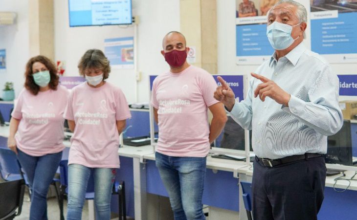 Además, los trabajadores se vistieron de rosa con consignas para la prevención del cáncer, en tanto, recibieron la infografía desde el Ministerio de Salud, para que todas las asistentes puedan despejar sus dudas.