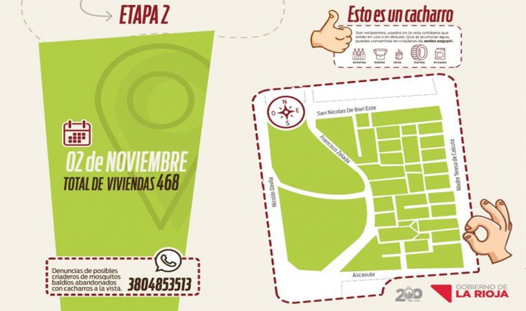 Cabe destacar que los cacharros son recipientes en desuso donde se acumulan agua y pueden convertirse en criaderos de aedes aegypti tales como: botellas, baldes, latas, cubiertas y envases. Ante denuncias por posibles criaderos de mosquitos y terrenos baldíos con cacharros se pueden contactar con el número 3804853513.