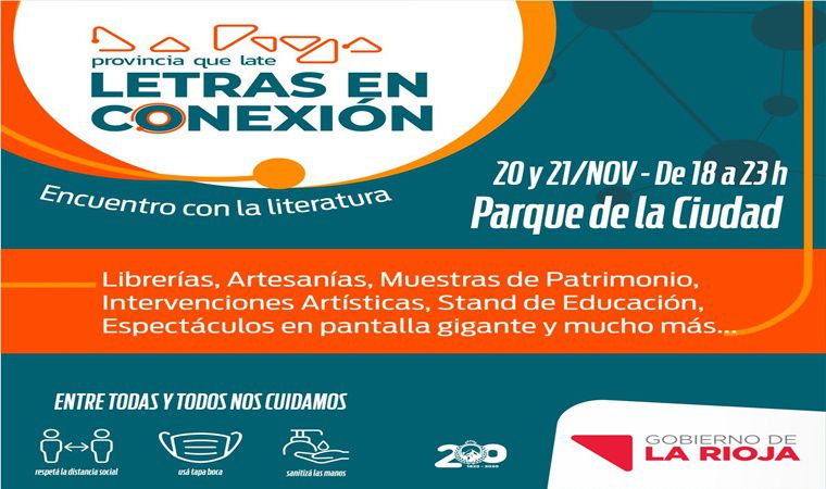 La Secretaría de Culturas propone el evento presencial Letras en Conexión: Encuentro con la Literatura en el Parque de la Ciudad, los días viernes 20 y sábado 21 de 18 a 23 horas, con una propuesta integral donde participan diferentes sectores de la cultura, principalmente los relacionados a la industria editorial, con el fin de crear un espacio seguro para promover la actividad comercial y social que anualmente movilizaba la tradicional Feria del Libro de nuestra provincia.