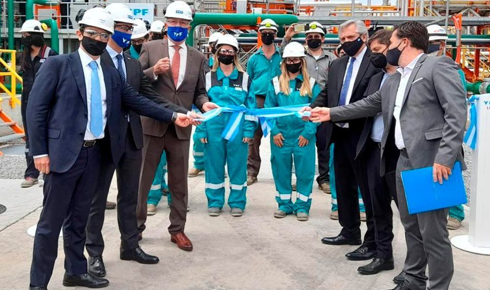 "YPF fue la nave insignia de las empresas argentinas. Funcionó durante muchos años como motor del crecimiento argentino", recordó el mandatario en la inauguración de la planta, acompañado por el gobernador bonaerense Axel Kicillof.