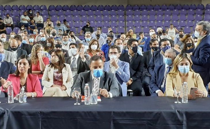 Autoridadades proviciales, intendentes, miembros de la función legislativa, instituciones intermedias, gremios provinciales, entre otros acompañaron al primer mandatario durante el anuncio.