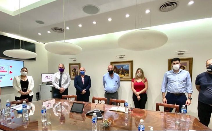 Con el objetivo de potenciar el alcance de la promoción bancaria "te Re súper banco"y articular herramientas de inclusión financiera para los comercios de la provincia, Marcelo Becerra, vicepresidente de Banco Rioja; Raúl Cabral, gerente general de Banco Rioja; Ricardo Bestani, Gerente comercial de la entidad y Carla Cortez, Directora de Pymes y Comercios del Ministerio de trabajo, empleo e industria, se reunieron hoy con los representantes de la Cámara Empresarial Riojana, Asociación de Comerciantes Unidos y referentes del Centro Comercial local.