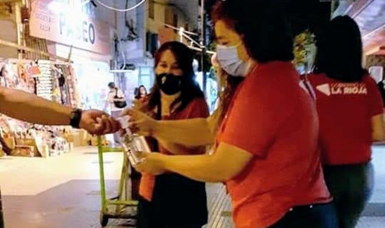En las últimas horas se pudo observar mayor presencia de los voluntarios en el centro capitalino, entregando barbijos de manera gratuita, alcohol en gel, solicitando el uso correcto del barbijo y el distanciamiento social, ante la alta circulación de personas por las fiestas de fin de año.