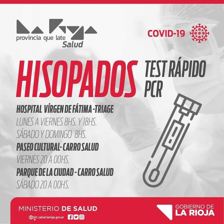 Desde el Ministerio de Salud de la provinica dieron a conocer los lugares y horarios en los que se realizarán los hisopados y test rápidos de PCR.