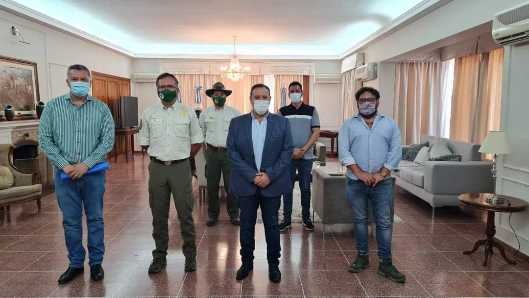 El gobernador Ricardo Quintela, junto al ministro de Turismo y Culturas Gustavo Luna y al secretario José Rosa, recibió este viernes a José María Hervás, intendente del Parque Nacional Talampaya, al jefe de guardaparques de este sitio, José Alberto Gallo, y al director regional de Operaciones de la Administración de Parques Nacionales para la zona Centro del país, Flavio Turne, para interiorizarse sobre la actividad de este emblemático producto turístico de La Rioja.