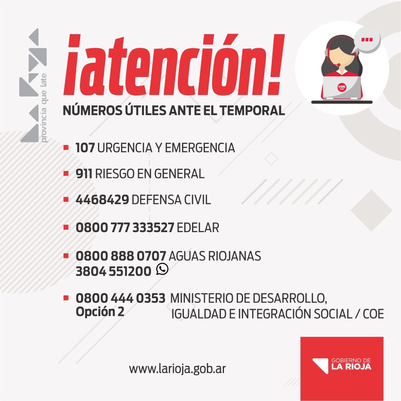 Las mismas daban cuenta de requerimientos relacionados con: asistencia social, árboles, postes y cables caídos al registrarse el fuerte viento.