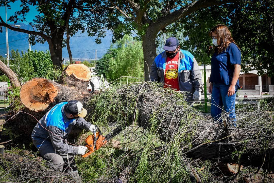 Sobre los trabajos que se están llevando a cabo, Brizuela y Doria remarcó: “estamos interviniendo los árboles caídos, conversando con los vecinos para avanzar en nuestro plan de reforestación que va a ser inmediato, por cada árbol caído, a consecuencia del temporal, queremos plantar dos más, pero no podemos hacerlo sin el compromiso del vecino para que lo ayuden a ese árbol a crecer y a que genere la sombra que necesitamos”.