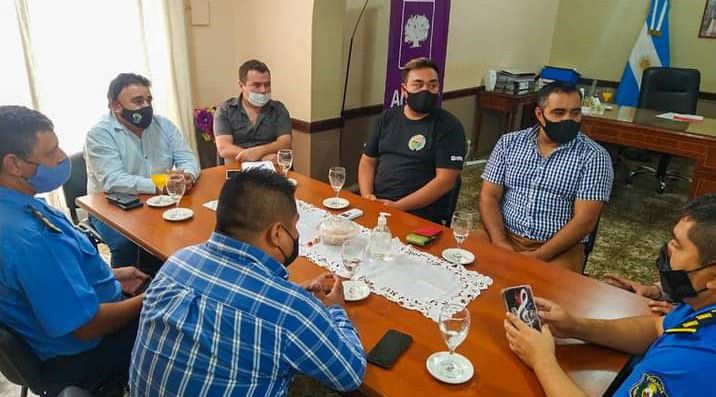 LA RIOJA.- El viceintendente Julio Reinoso a cargo del Ejecutivo Municipal, junto al Secretario de Gobierno, Iván Ferrari, recibió al jefe de la Regional III Crio. Víctor Córdoba y Jefes de la Comisaría local, para tratar y coordinar acciones tendientes a mejorar la seguridad de los productores durante la cosecha de aceituna 2021, buscando y estableciendo estrategias para que no sean vulnerados sus derechos.