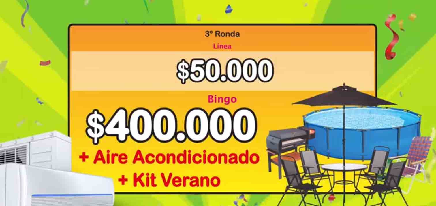 La ronda principal que es la tercera tendrá una línea de 50 mil pesos y un bingo de 400 mil pesos en efectivo más un aire acondicionado y un espectacular kit de verano.