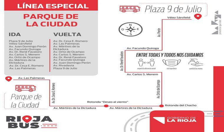 LA RIOJA.- El Gobierno de la Provincia informó que se incorpora una línea especial de Rioja Bus para los días sábados al Parque de la Ciudad. La línea especial iniciará el recorrido todos los sábados desde las 16 horas.