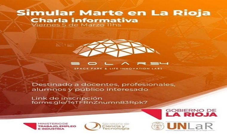 Con el propósito de difundir los alcances del proyecto Solar 54, cuyo objetivo es investigar condiciones de vida humana en el planeta Marte, se realizará este viernes 5 de marzo a partir de las 11 horas una charla virtual organizada por la Universidad Nacional de La Rioja y el Ministerio de Trabajo, Empleo e Industria del gobierno provincial.