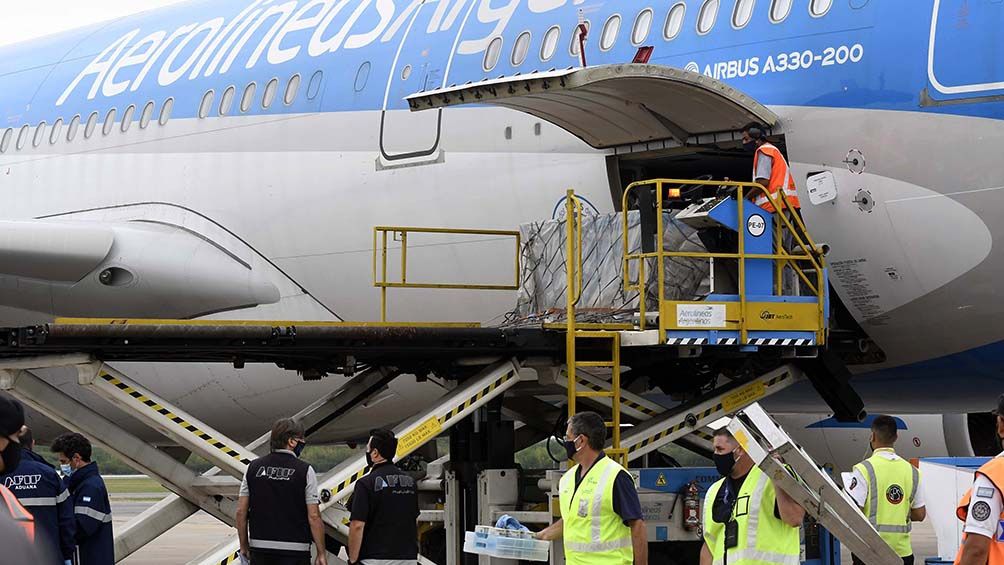 Aerolíneas Argentinas inició sus vuelos a Moscú a fines de diciembre y en los dos primeros vuelos llegaron al país 600.000 dosis de Sputnik V, mientras que en el tercero llegaron 220.000 dosis.