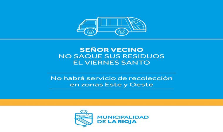 La comuna asimismo, le recuerda a los vecinos tanto de zona Este como Oeste que este viernes próximo no sacar las bolsas de basura, para así evitar cualquier inconveniente.