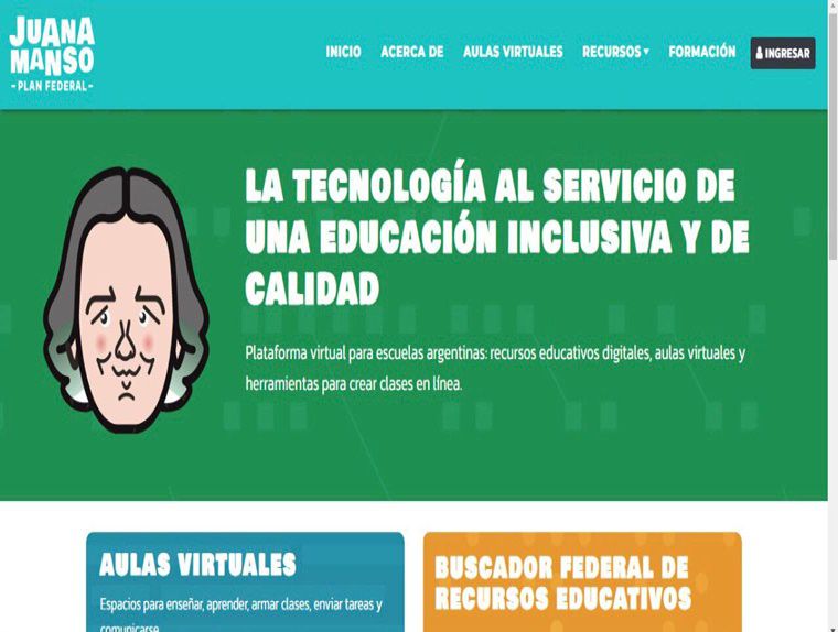 Juana Manso es un Plan Federal del Ministerio de Educación (www.juanamanso.edu.ar) que abarca conectividad, equipamiento, una propuesta de formación y capacitación docente y una plataforma federal educativa con aulas virtuales y de navegación gratuita, segura y soberana para el sistema educativo de la Argentina.