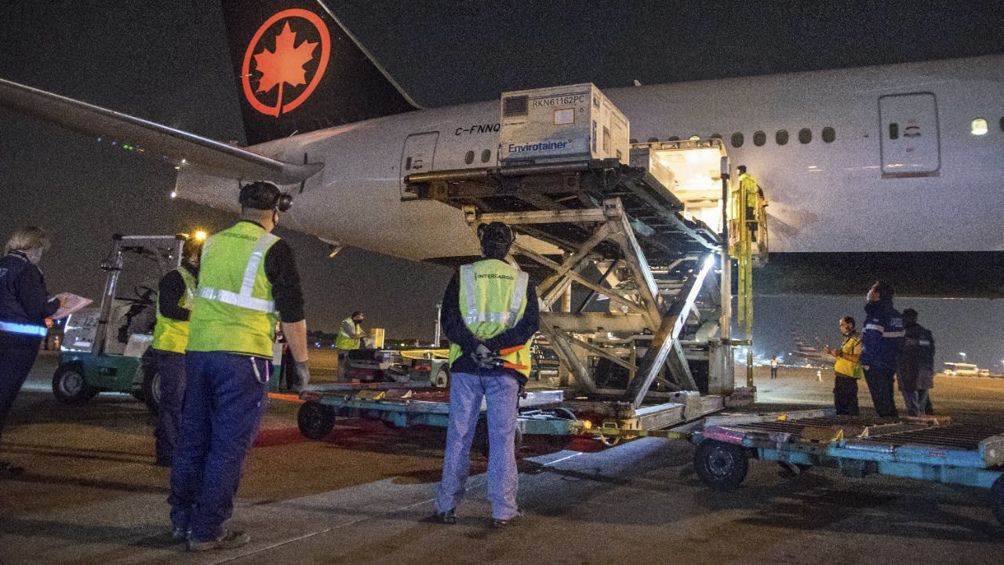 Las vacunas arribaron en un vuelo de la compañía Air Canada, que tocó pista en el aeropuerto Internacional de Ezeiza a las 19.51 con 1.654.500 dosis en sus bodegas.