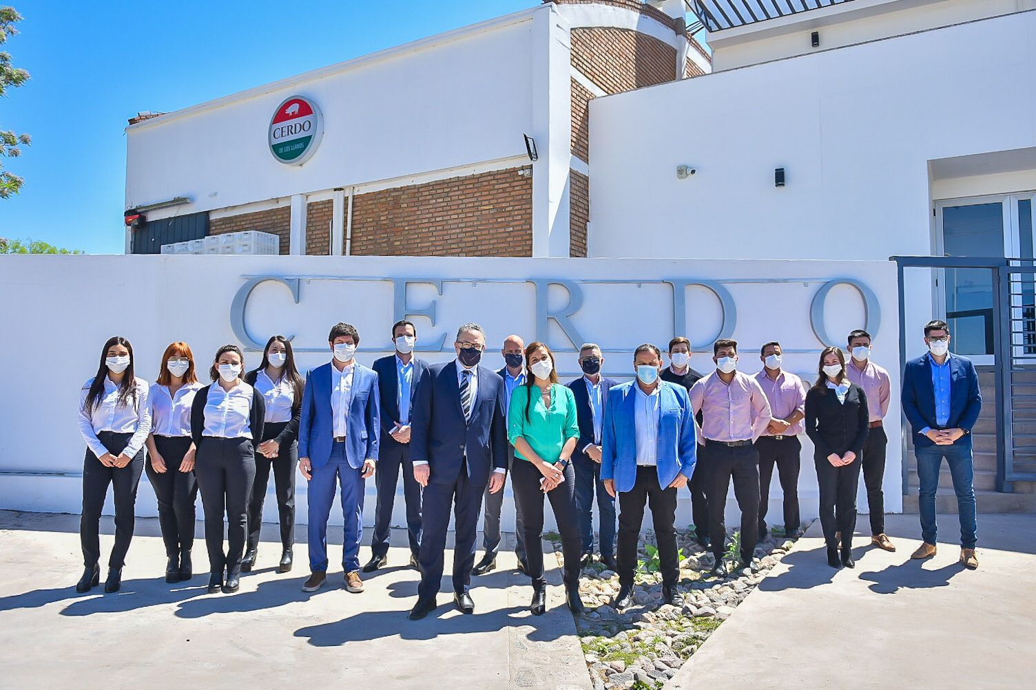 Junto al ministro de Desarrollo Productivo de la Nación, Matías Kulfas, el secretario de Industria de la Nación, Ariel Schale, el secretario de la Pequeña y Mediana Empresa y de los Emprendedores de la Nación, Guillermo Merediz y la asesora del Ministerio de Desarrollo Productivo, Laura Di Matteo, el mandatario provincial recorrió la empresa riojana de "Cerdo de los Llanos".