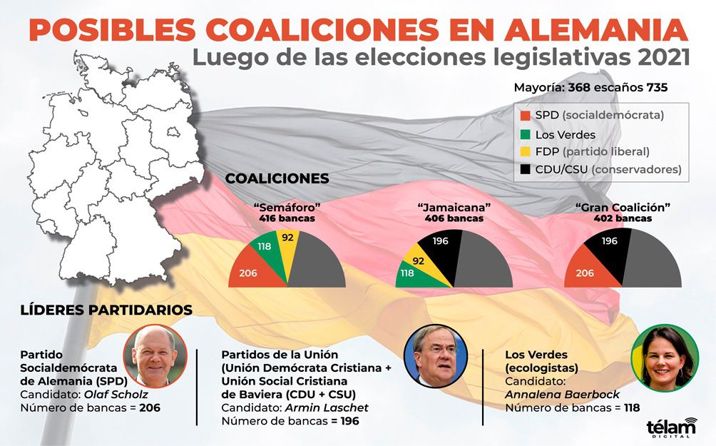 Del lado de la Unión, el bloque de Merkel, formado por su Unión Demócrata Cristiana (CDU) y la Unión Social Cristiana (CSU), se multiplicaban las recriminaciones hacia el candidato perdedor Armin Laschet, que no ha hecho un claro mea culpa tras la derrota ni aceptado renunciar a suceder a la canciller saliente en la Jefatura de Gobierno.