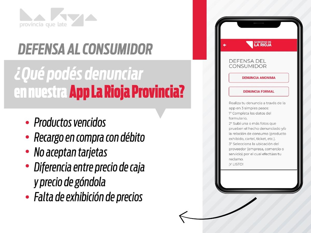 A través de la pestaña “Defensa al Consumidor” se pueden denunciar el cobro en la caja de un precio superior al exhibido, la venta de productos vencidos, el cobro de un recargo en compras con tarjeta de débito, la falta de precios en los productos, entre otros aspectos.
