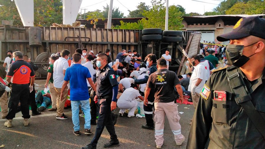 Al menos 49 migrantes murieron cuando un camión en el que viajaban clandestinamente chocó contra un muro de contención y volcó en una carretera del sureño estado mexicano de Chiapas, informaron fuentes de la fiscalía estatal.