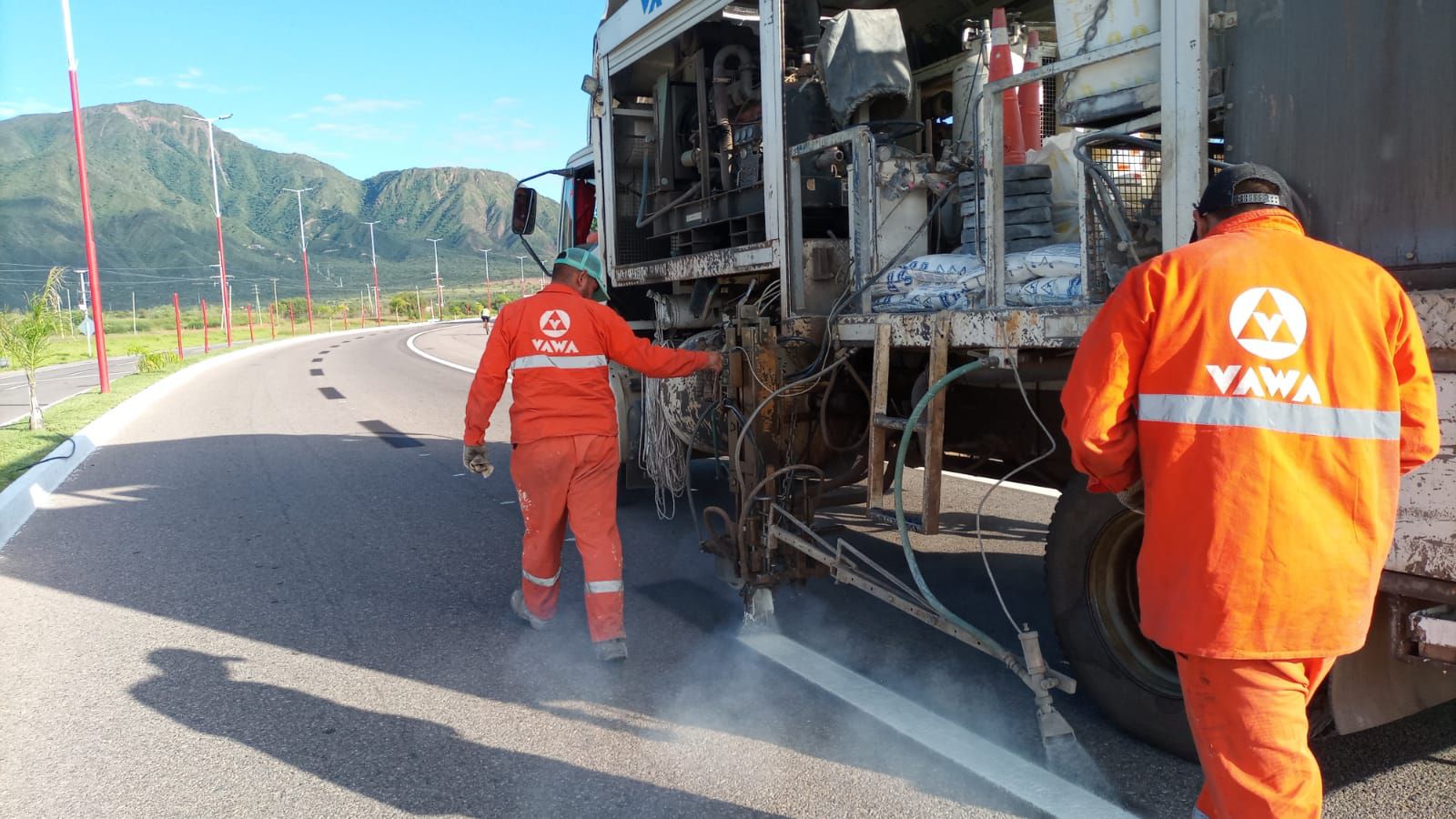 Teniendo como premisa la seguridad vial al momento de transitar el mencionado tramo, en el día de hoy se culmina con la primera etapa de señalamiento que comprende el repintado de eje en 15 cm de ancho y bordes en 20 cm de ancho ambos en 2 mm de espesor.