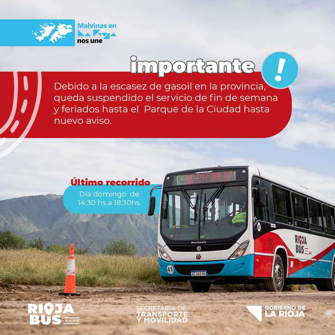 LA RIOJA.- Desde la empresa de transporte Rioja Bus informan que este domingo 4 de junio, será el último recorrido de las unidades de transporte urbano de pasajeros que se realizará al Parque de la Ciudad hasta nuevo aviso.