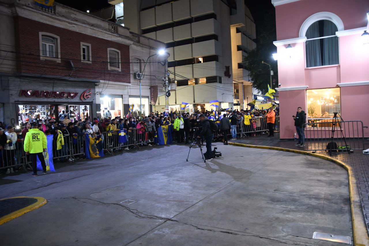 Miles de fanáticos de Boca, se unieron en caravana para esperar la llegada de los jugadores en el aeropuerto local y los escoltaron hasta el Hotel Naindo, donde pasarán la noche y fueron recibidos por una multitud extraordinaria que los esperaron a cánticos y alientos.