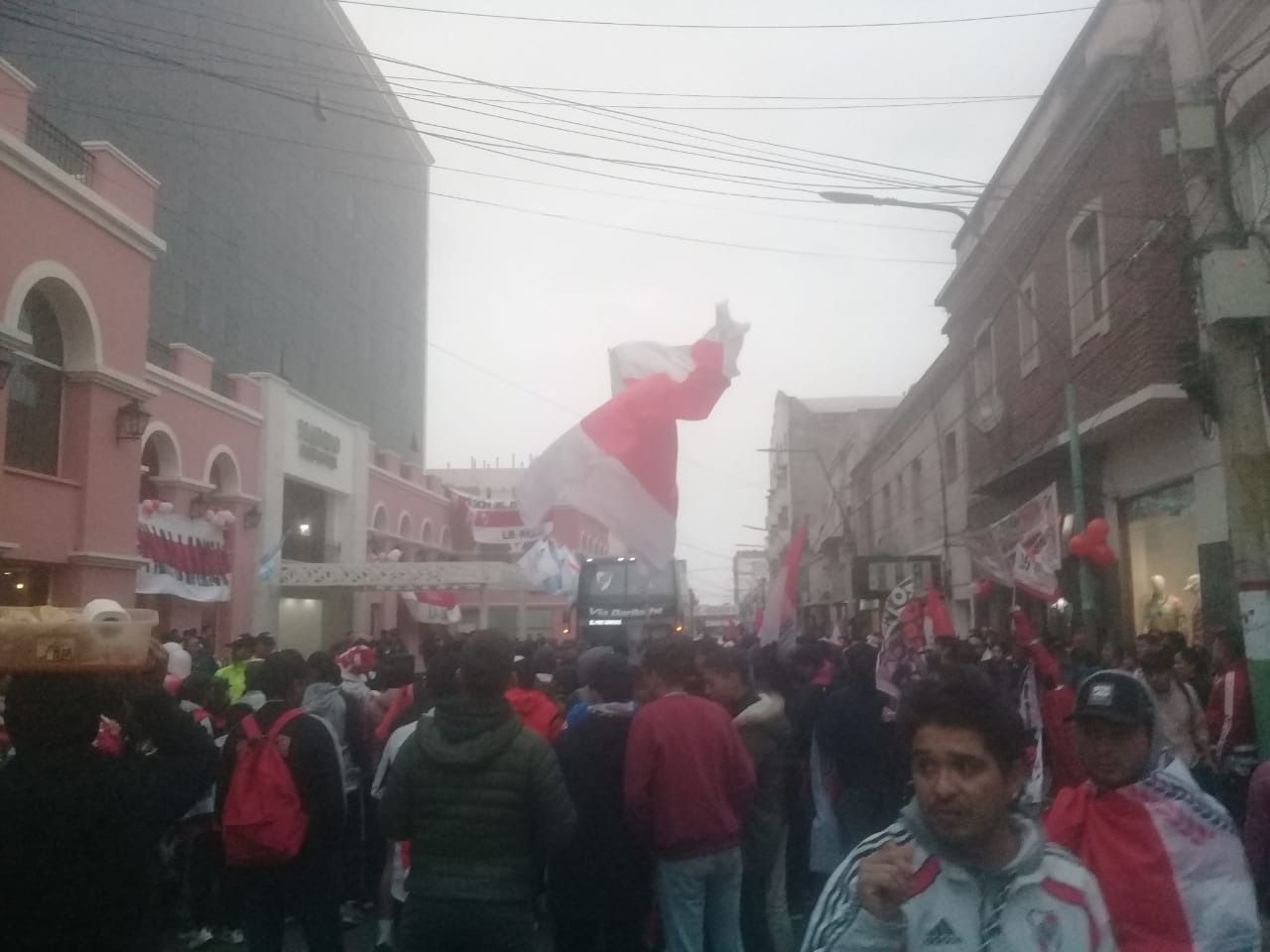 Con banderas, bombos, platillos y bengalas de humo, los fanáticos riverplatenses aguardaron el arribo de la delegación millonaria al canto de "vamos, vamos, vamos, River Plate". El Millonario visita La Rioja por segunda vez en su historia, la última fue hace 39 años en una derrota por 2-1 con Andino, por la fecha 4 del Torneo Nacional, y la provincia se encuentra totalmente revolucionada.