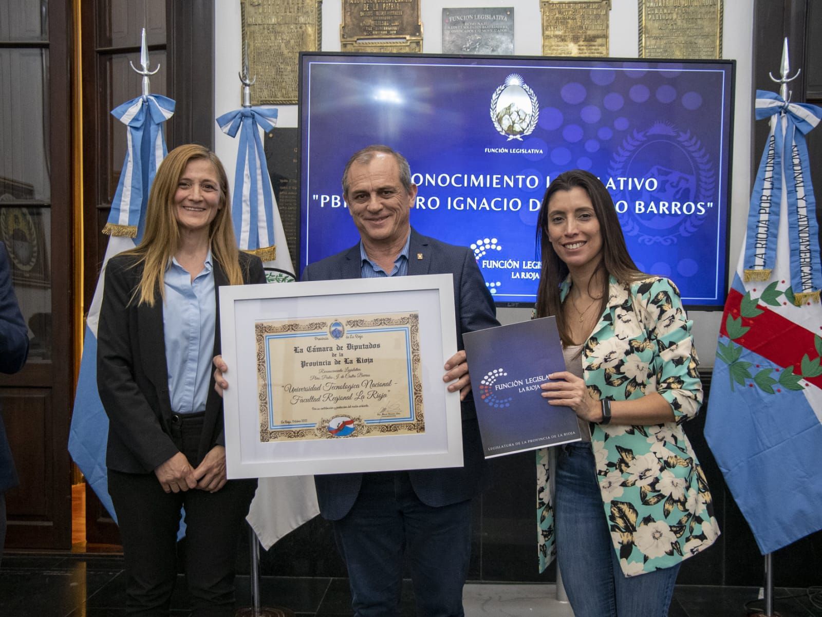 Al momento de la entrega del reconocimiento estuvieron presentes también, el secretario de Planeamiento y Gestión, Ingeniero Martín Heredia y el secretario de Extensión y Cultura, Ingeniero Antonio Abdala. También participó la diputada provincial Nadina Reynoso.