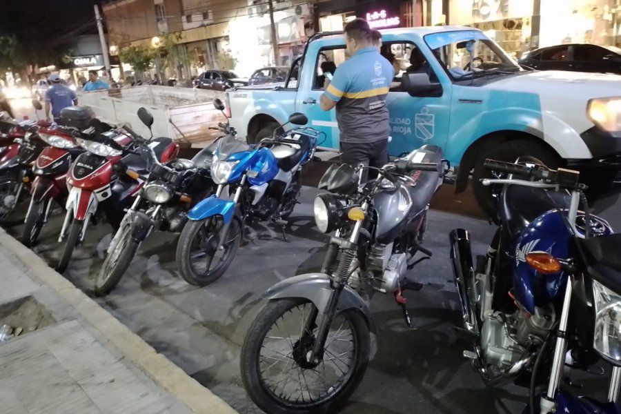 El sábado por la noche, fue el turno de un importante operativo que tuvo lugar en Rivadavia y 9 de Julio, sobre la vereda de la Iglesia La Merced, donde según muestra el registro fotográfico, se acumularon decenas de motos que aparentemente tenían problemas de papeles.