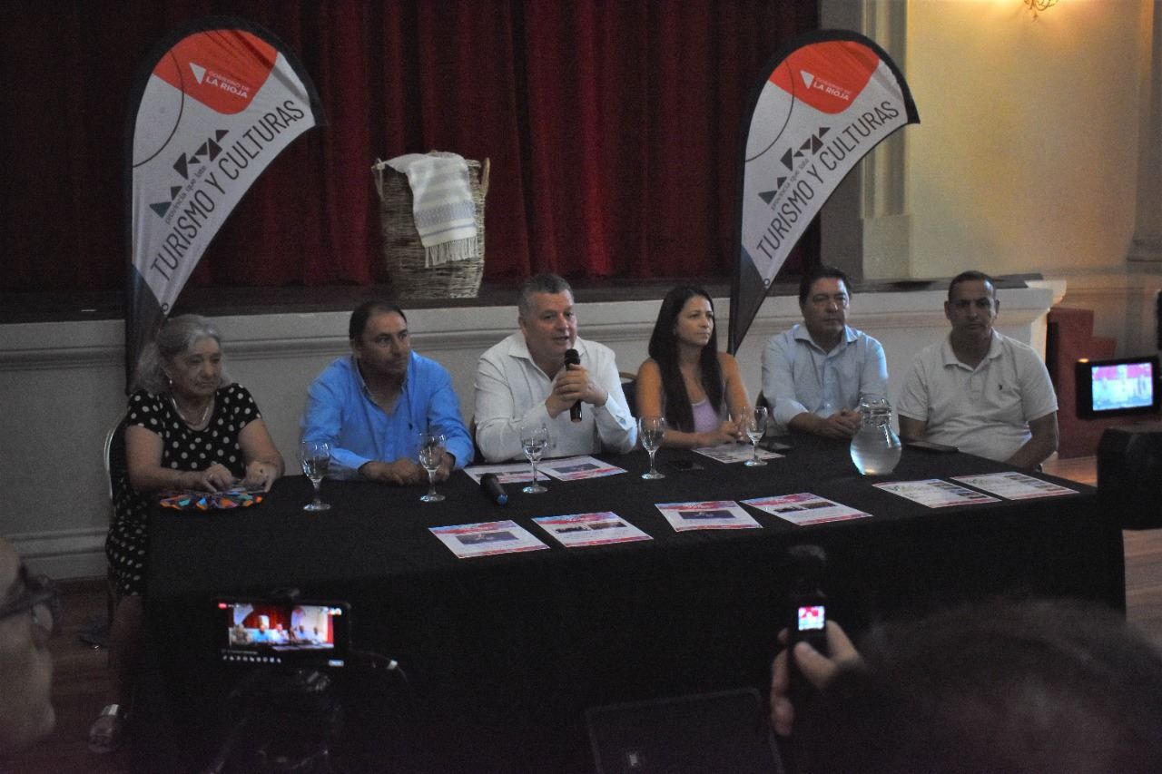 El ministro Gustavo Luna y la secretaria Patricia Herrera, junto al intendente del departamento General Felipe Varela, Yamil Sarruf, fueron los encargados de anunciar la grilla y los detalles del evento, que tendrá como números de cierre a Lucas Sugo, Estelares y Guitarreros, además de los más destacados artistas riojanos.