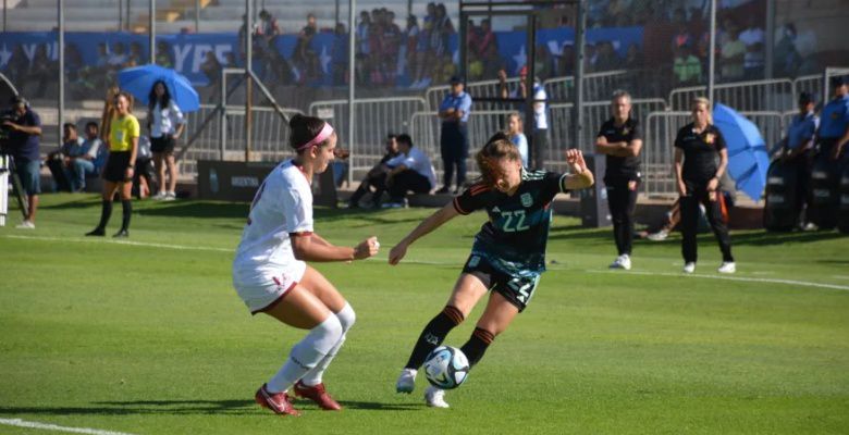 Argentina sacó ventajas en el arranque del partido, ya a los 3' Eliana Stábile desbordó por la izquierda y sacó el centro para Sophia Braun, que anticipó a la marca y metió el cabezazo goleador al segundo palo.