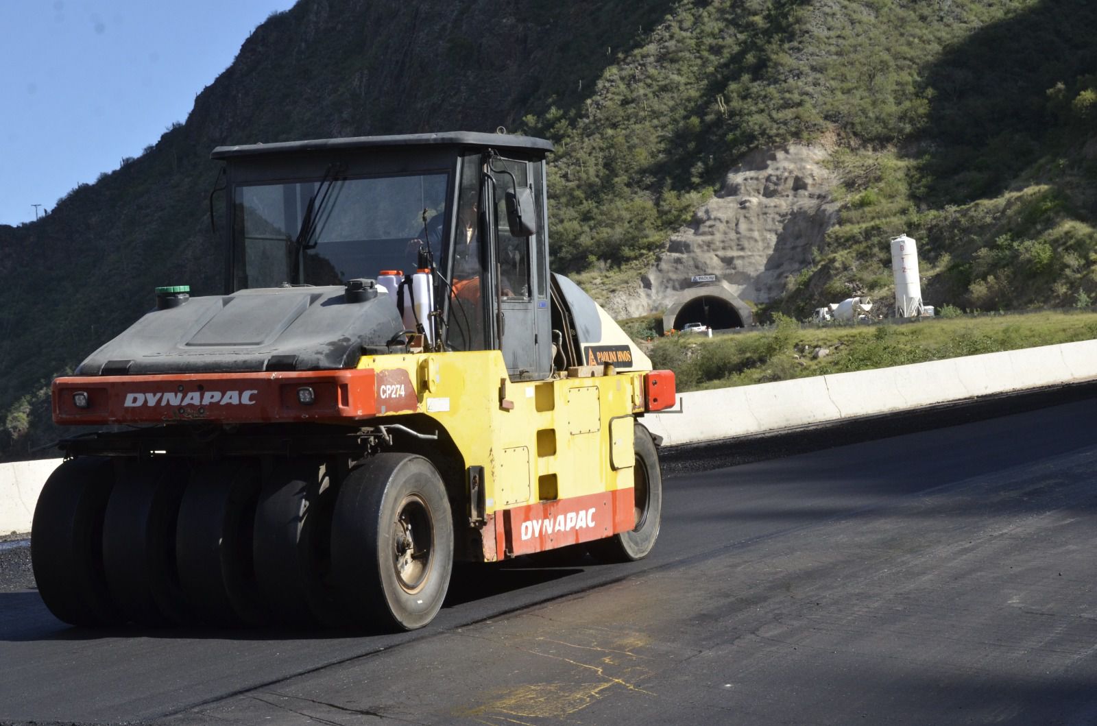 Actualmente se está avanzando en la construcción de la carpeta de rodamiento en concreto asfaltico del primer tramo que tiene un ancho de 6.70 m y 5 cm de espesor. Con estos trabajos que se están ejecutando en estos días, los primeros 3.3 km de ruta nueva ya estarían en condiciones de estar operativos.